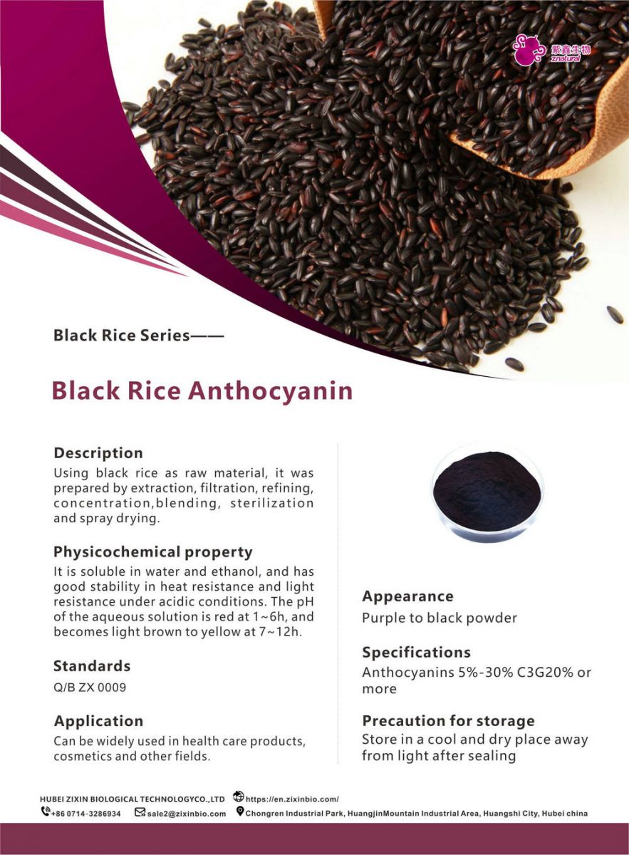 Using black rice as raw material, it is made through extraction, filtration, refining, concentration, blending, sterilization, spray drying and other processes.