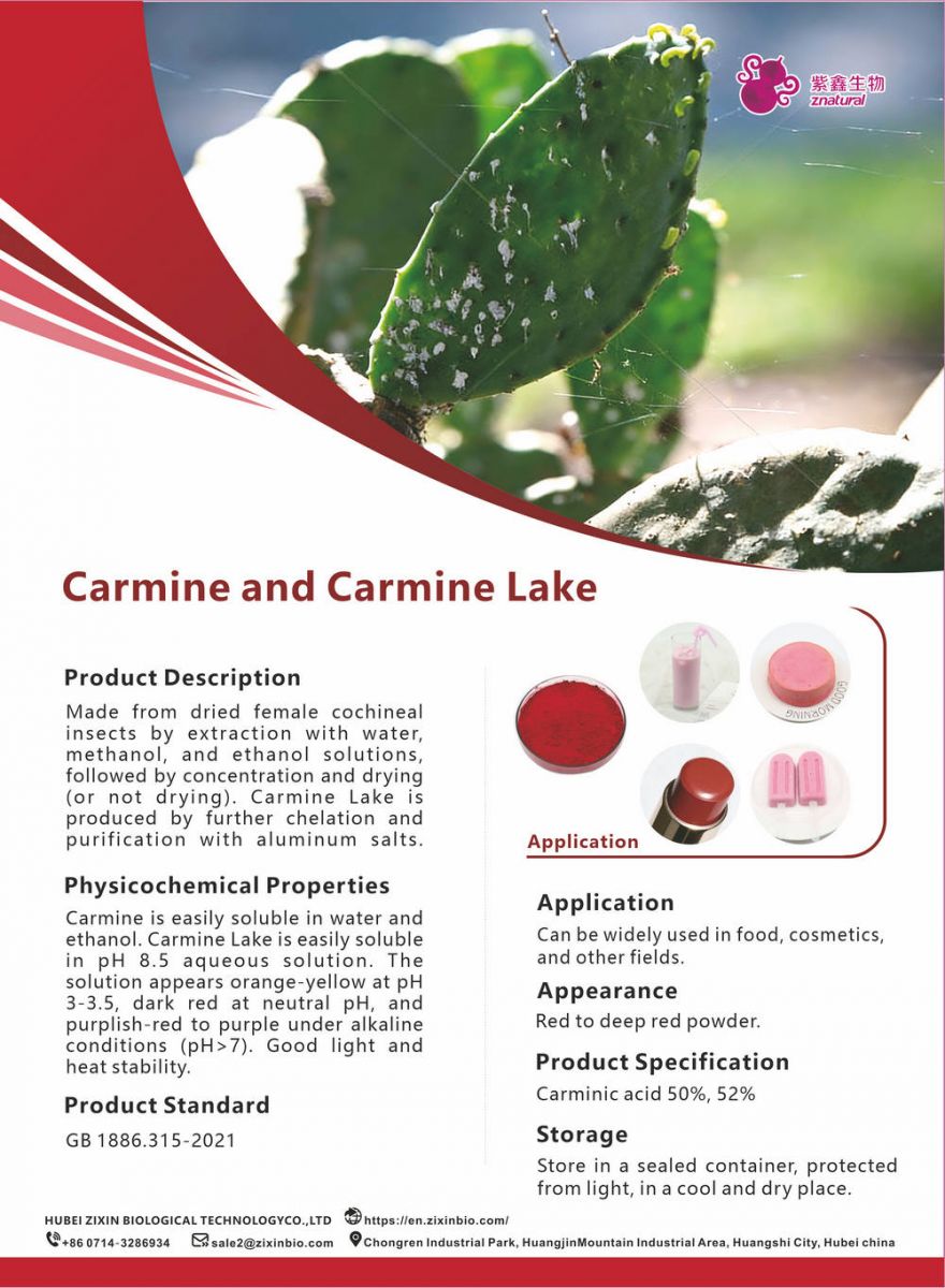 Using dried female adult cochineal worms as raw materials, extracted with water, methanol, and ethanol solutions, and then concentrated, dried, or not dried to produce; Or further chelate and refine with aluminum salts to produce cochineal red aluminum lake.